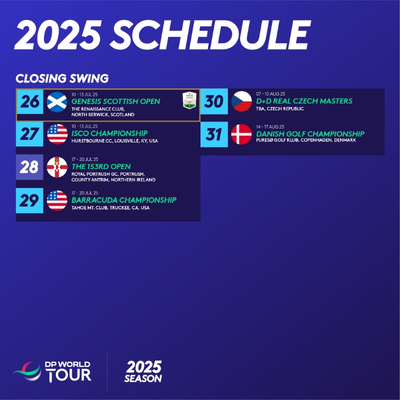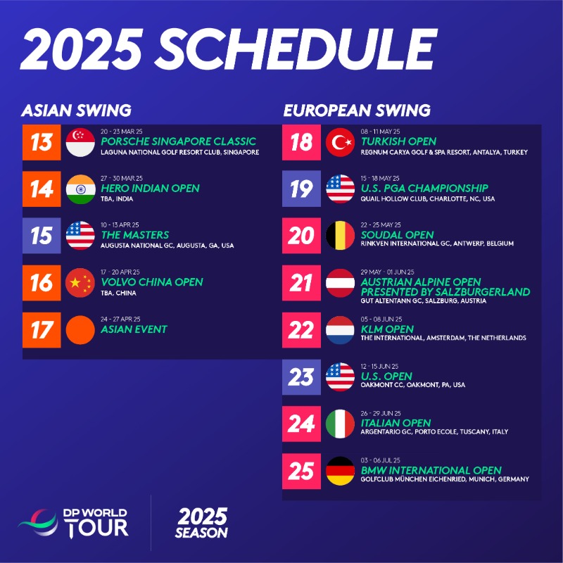 For the second consecutive season, the schedule will comprise three distinct phases, beginning with five ‘Global Swings’ followed by the ‘Back 9’, with the season then culminating with the ‘DP World Tour Play-Offs’ in November 2025.